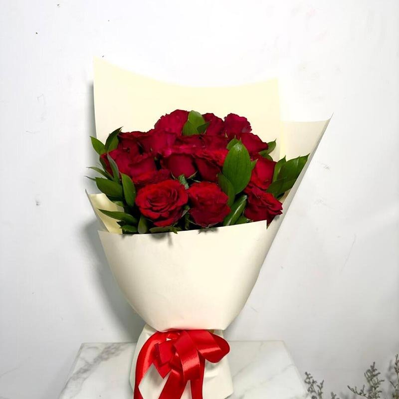 Stunning bouquet featuring 15 fresh red roses, beautifully arranged to convey love and passion. This timeless floral arrangement is perfect for romantic gestures, anniversaries, or heartfelt celebrations. Order now from Mister Berry with same-day delivery in Dubai, Sharjah, and Ajman, and next-day delivery across other emirates.